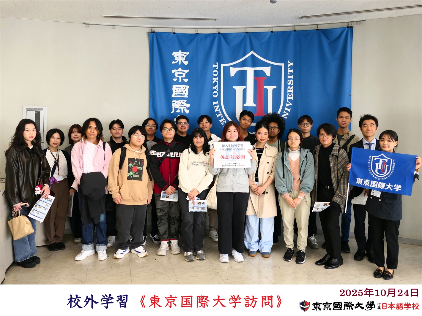 10月24日(金)、7月生・10月生として本校に入学した約120名の新入生が、校外学習として東京国際大学 川越第1キャンパスを訪問しました。その後は、希望者を対象に川越市立美術館の見学と、風情ある小江戸・川越の街並み散策を行いました。