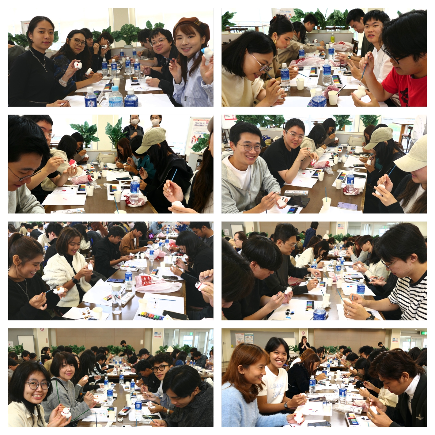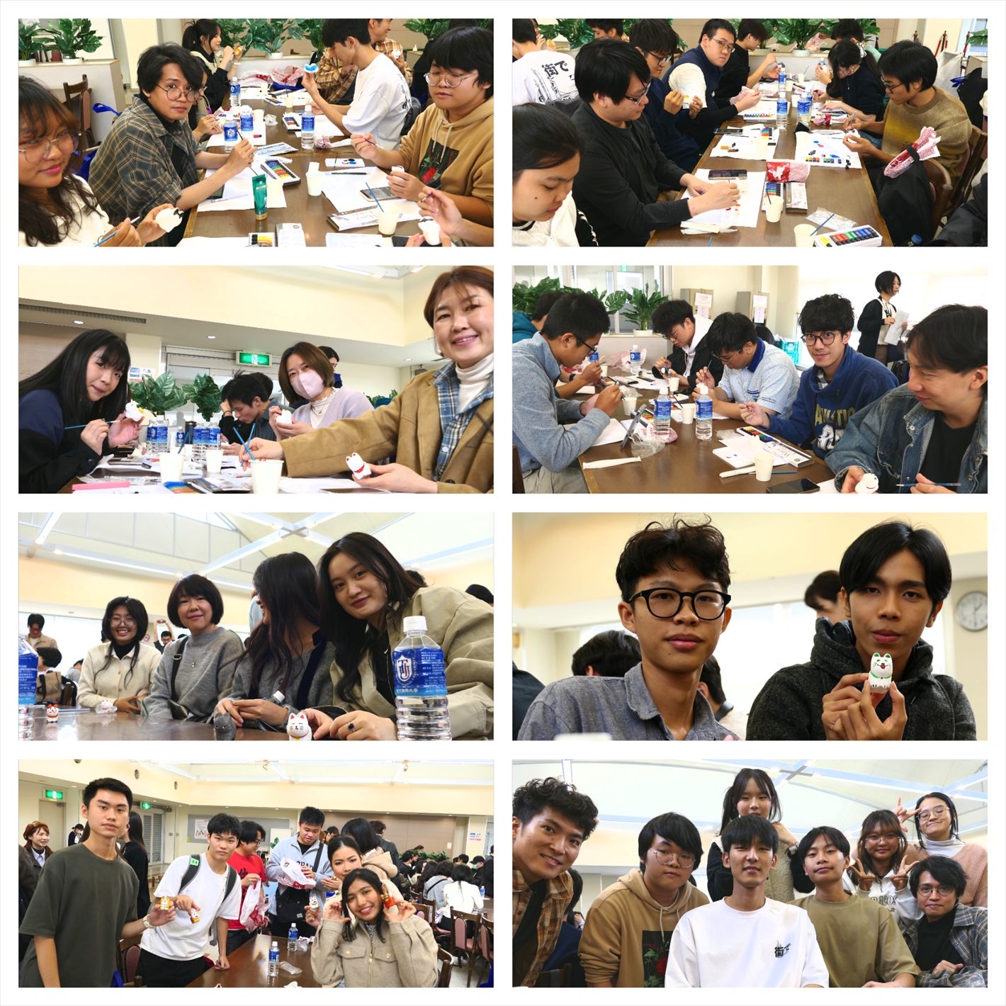 昼食は、普段は大学生が自由に過ごす学生ラウンジを貸し切り、彩り豊かな幕の内弁当に舌鼓を打ちました。食後には、川越の伝統工芸でもある犬張子の絵付け体験を実施。思い思いの色を使って世界に一つだけの作品を仕上げました。