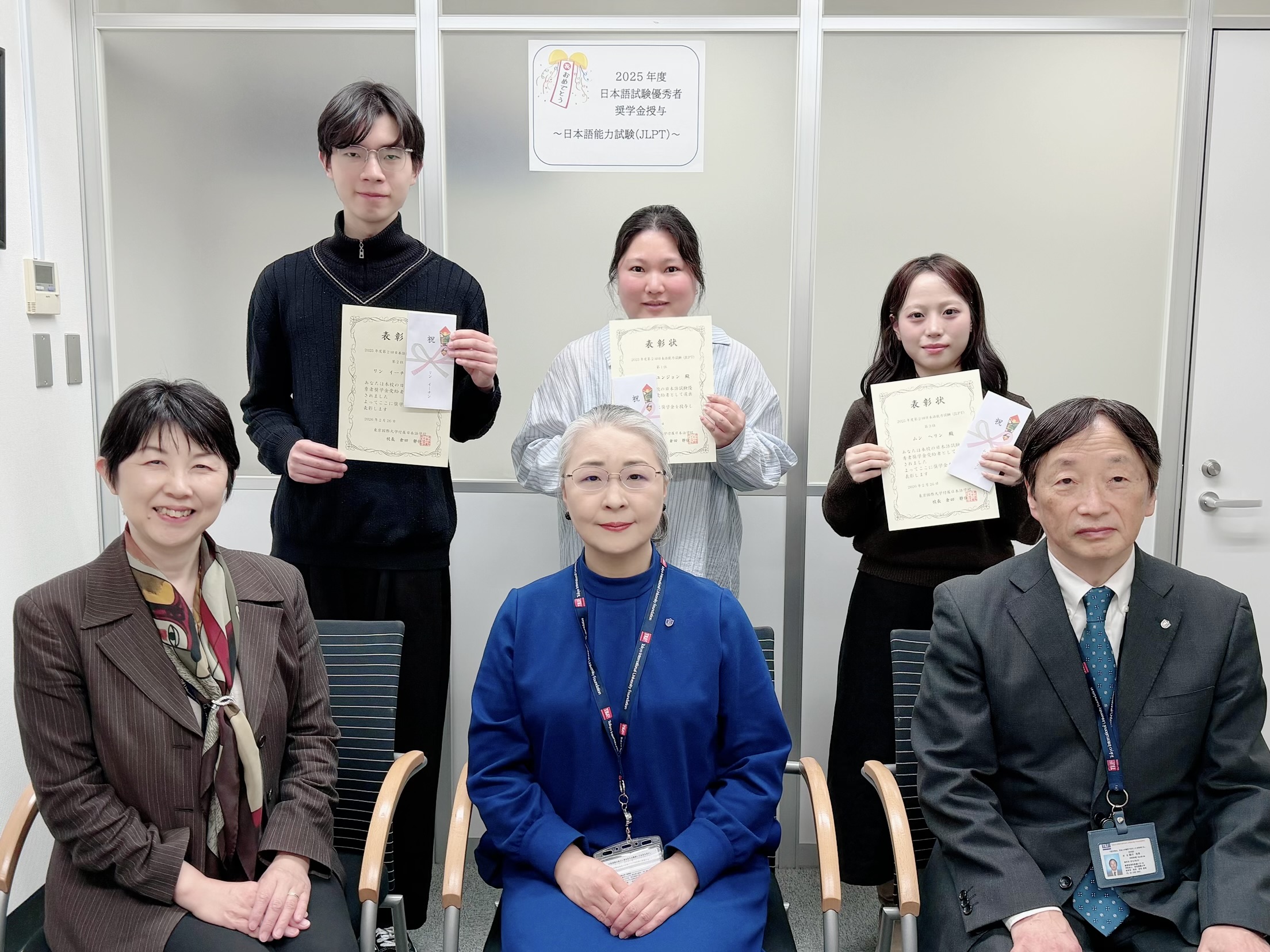 2月26日(木)、本校独自の奨学金『2025年度 第2回 日本語試験優秀者奨学金(JLPT)』を下記3名の学生に授与しました。